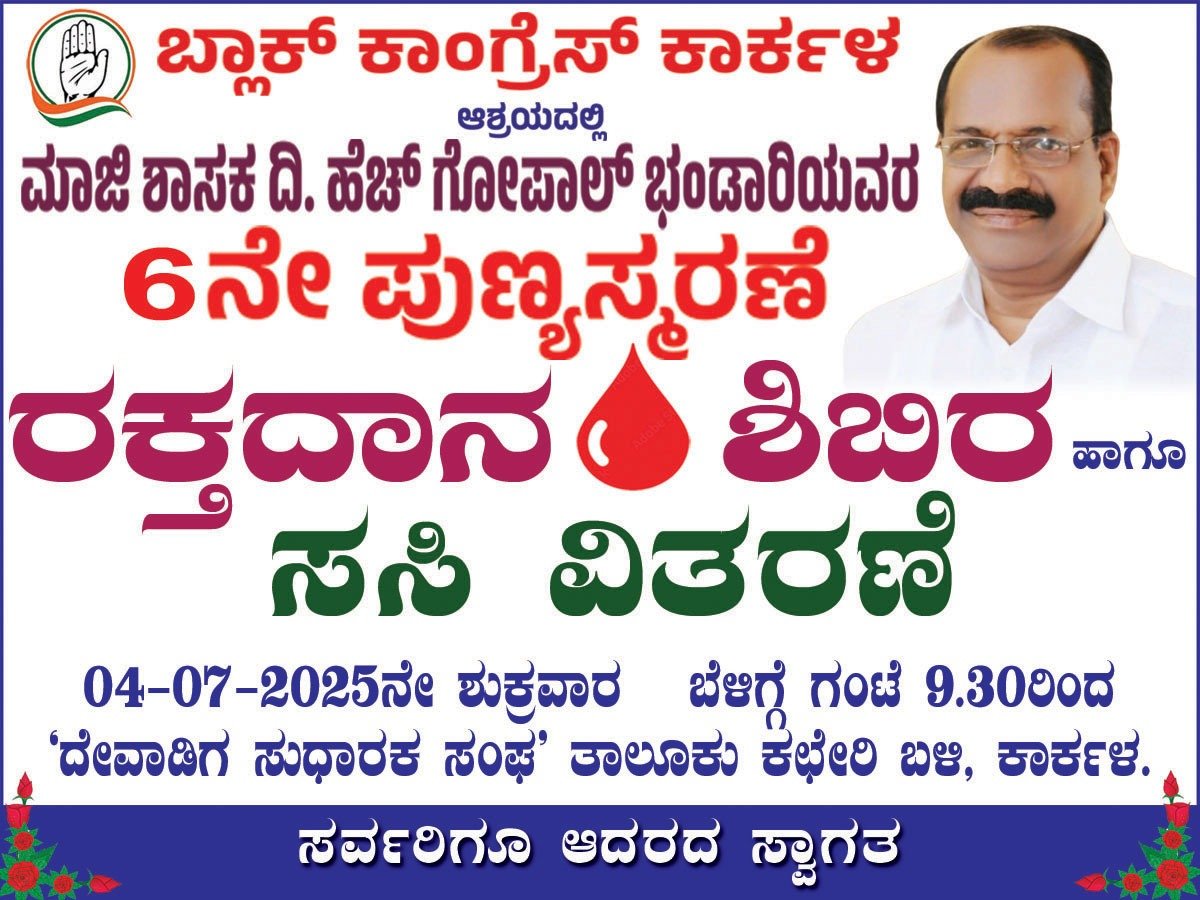 ಕಾರ್ಕಳ : ಮಾಜಿ ಶಾಸಕ ದಿ. ಹೆಚ್ ಗೋಪಾಲ ಭಂಡಾರಿಯವರ ಪುಣ್ಯಸ್ಮರಣೆಯ ಪ್ರಯುಕ್ತ ಜುಲೈ...