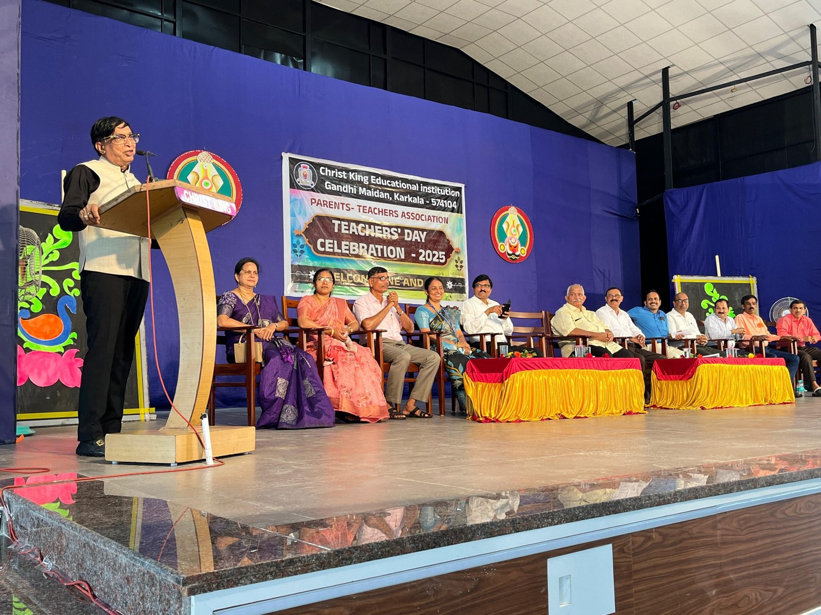 ಕಾರ್ಯಕ್ರಮದ ಅಧ್ಯಕ್ಷತೆ ವಹಿಸಿದ್ದ ಕ್ರೈಸ್ಟ್ ಕಿಂಗ್ ಎಜುಕೇಷನ್ ಟ್ರಸ್ಟ್ನ ಸದಸ್ಯ ಡಾ.ಪೀಟರ್ ಫೆರ್ನಾಂಡಿಸ್ ಅವರು ಮಾತನಾಡಿ “ಶಿಕ್ಷಕರು ಮಕ್ಕಳನ್ನು ಪ್ರೀತಿ ವಾತ್ಸಲ್ಯದಿಂದ ನೋಡಿಕೊಳ್ಳಬೇಕು, ನಮ್ಮ ದೇಶಕ್ಕಾಗಿ ಕಾಯಾ ವಾಚಾ ಮನಸಾ ದುಡಿಯುವುದೇ ನಿಜವಾದ ದೇಶಪ್ರೇಮ. ಭಾರತದ ಭವಿಷ್ಯ ನಿರ್ಮಾಣವಾಗುವುದು ತರಗತಿ ಕೊಠಡಿಗಳಲ್ಲಿ, ಅಲ್ಲಿ ಮಕ್ಕಳಿಗೆ ಸರಿಯಾದ ಮೌಲ್ಯಯುತ ಶಿಕ್ಷಣ ದೊರೆತಾಗ ಭಾರತ ವಿಶ್ವನಾಯಕನಾಗುತ್ತದೆ” ಎಂದು ಹೇಳಿದರು.