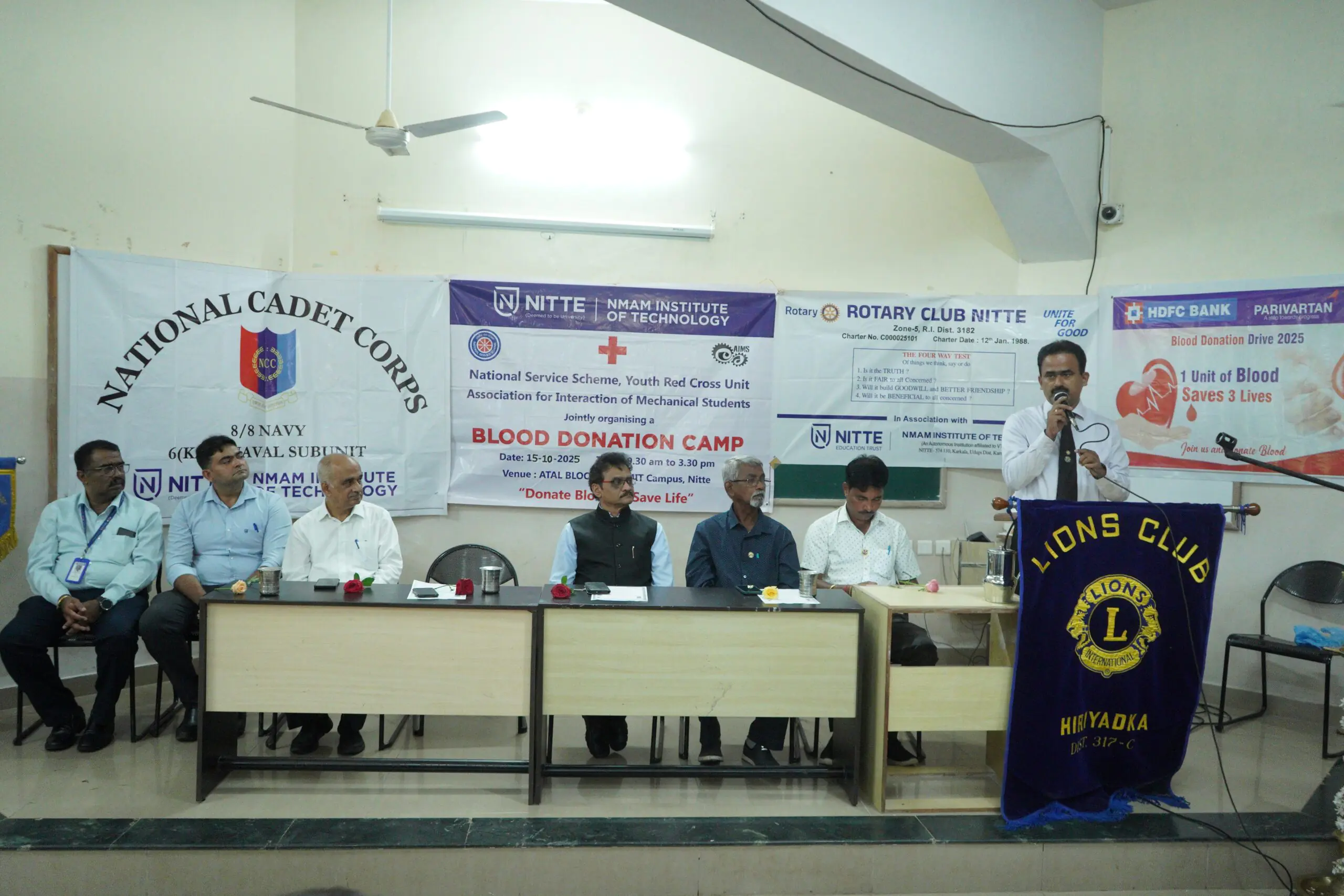ಅವರು ನಿಟ್ಟೆ ತಾಂತ್ರಿಕ ಮಹಾವಿದ್ಯಾಲಯದ ರಾಷ್ಟ್ರೀಯ ಸೇವಾ ಯೋಜನೆ (ಎನ್.ಎಸ್.ಎಸ್), ರೆಡ್ಕ್ರಾಸ್ ಸೊಸೈಟಿ, ೬ (ಕೆ.ಎ.ಆರ್) ನೇವಿ ಎನ್.ಸಿ.ಸಿ. ಸಬ್ಯುನಿಟ್ ನಿಟ್ಟೆ, ಮೆಕ್ಯಾನಿಕಲ್ ವಿಭಾಗದ ಏಐಎಂಎಸ್ ಘಟಕ, ರೋಟರಿಕ್ಲಬ್ ನಿಟ್ಟೆ, ಲಯನ್ಸ್ ಕ್ಲಬ್ ಹಿರಿಯಡ್ಕ, ಲಯನ್ಸ್ ಕ್ಲಬ್ ಬಪ್ಪನಾಡು, ಹೆಚ್.ಡಿ.ಎಫ್.ಸಿ ಬ್ಯಾಂಕ್, ಕೆ.ಎಸ್ ಹೆಗ್ಡೆ ಮೆಡಿಕಲ್ ಕಾಲೇಜು, ನಿಟ್ಟೆ ಗಾಜ್ರಿಯಾ ಆಸ್ಪತ್ರೆ ಮತ್ತು ಉಡುಪಿ ಜಿಲ್ಲಾ ಆಸ್ಪತ್ರೆಯ ಸಂಯುಕ್ತ ಆಶ್ರಯದಲ್ಲಿ ಅ.15 ರಂದು ನಿಟ್ಟೆ ತಾಂತ್ರಿಕ ಮಹಾವಿದ್ಯಾಲಯದಲ್ಲಿ ಹಮ್ಮಿಕೊಂಡ ರಕ್ತದಾನ ಶಿಬಿರವನ್ನು ಉದ್ಘಾಟಿಸಿ ಮಾತನಾಡಿದರು.