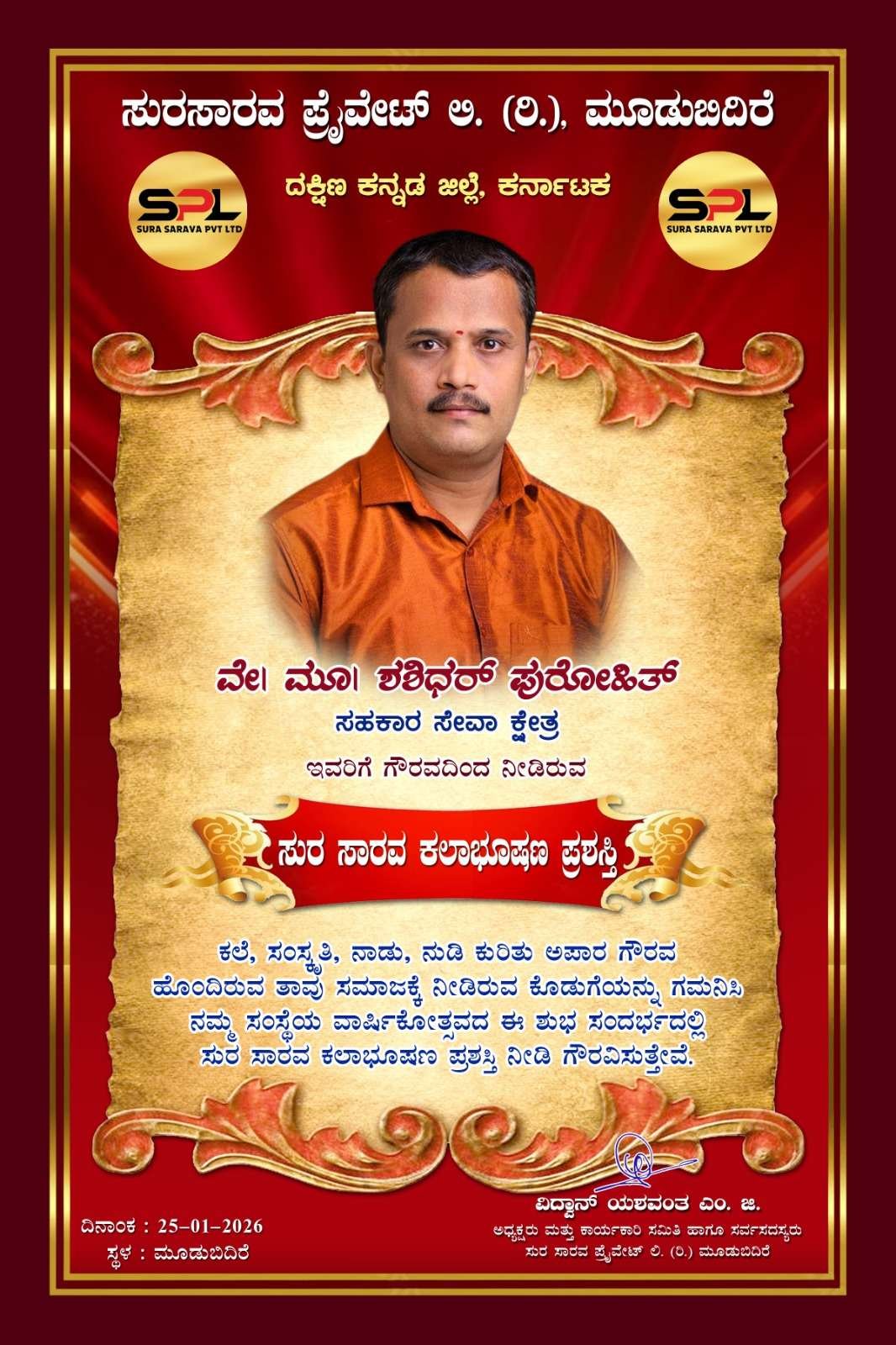ಮೂಡುಬಿದಿರೆ:ಜ.25 ಸುರಸಾರವ ಪ್ರೈವೇಟ್ ಲಿ. (ರಿ.) ಸಂಗೀತೋತ್ಸವ 2026-ಐವರಿಗೆ ಪ್ರಶಸ್ತಿ ಪ್ರಧಾನ