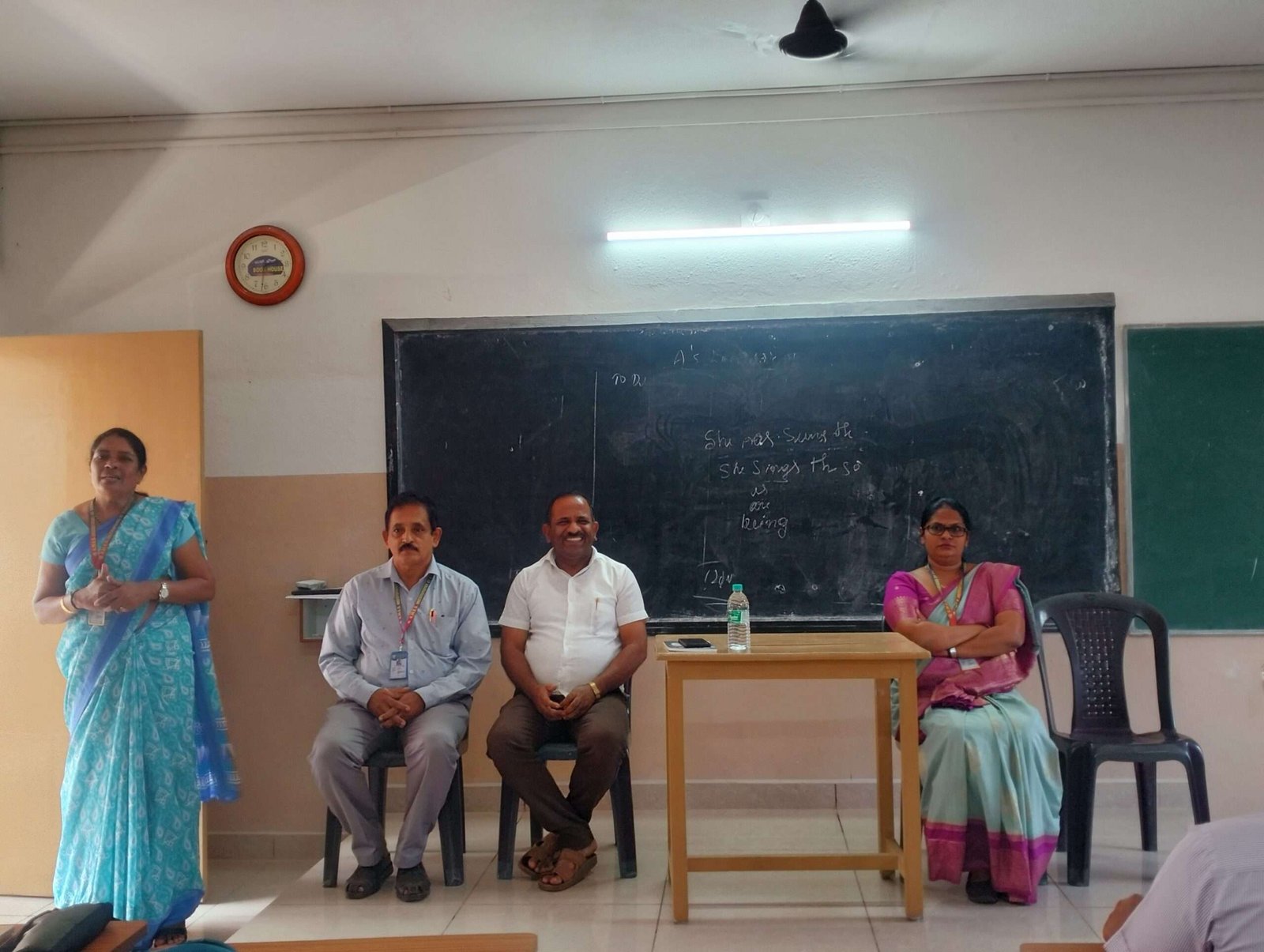 ಪ್ರೌಢಶಾಲೆಯ ಮುಖ್ಯೋಪಾಧ್ಯಾಯಿನಿ ಶ್ರೀಮತಿಯವರು ಸ್ಟಾಗತಿಸಿದರು. ಕಾಲೇಜಿನ ಪ್ರಾಂಶುಪಾಲರಾದ ಕೆ.ಬಾಲಕೃಷ್ಣ ರಾವ್, ಪ್ರೈಮರಿ ವಿಭಾಗದ ಮುಖ್ಯಸ್ಥೆ ಲೊಲಿಟ ಡಿ’ಸಿಲ್ವ ವೇದಿಕೆಯಲ್ಲಿ ಉಪಸ್ಥಿತರಿದ್ದರು. ಪ್ರೌಢ ಶಿಕ್ಷಕಿ ಶೃತಿ ಅತಿಥಿಗಳಿಗೆ ಹೂ ಮತ್ತು ಸ್ಮರಣಿಕೆ ನೀಡಿ ಗೌರವಿಸಿದರು.