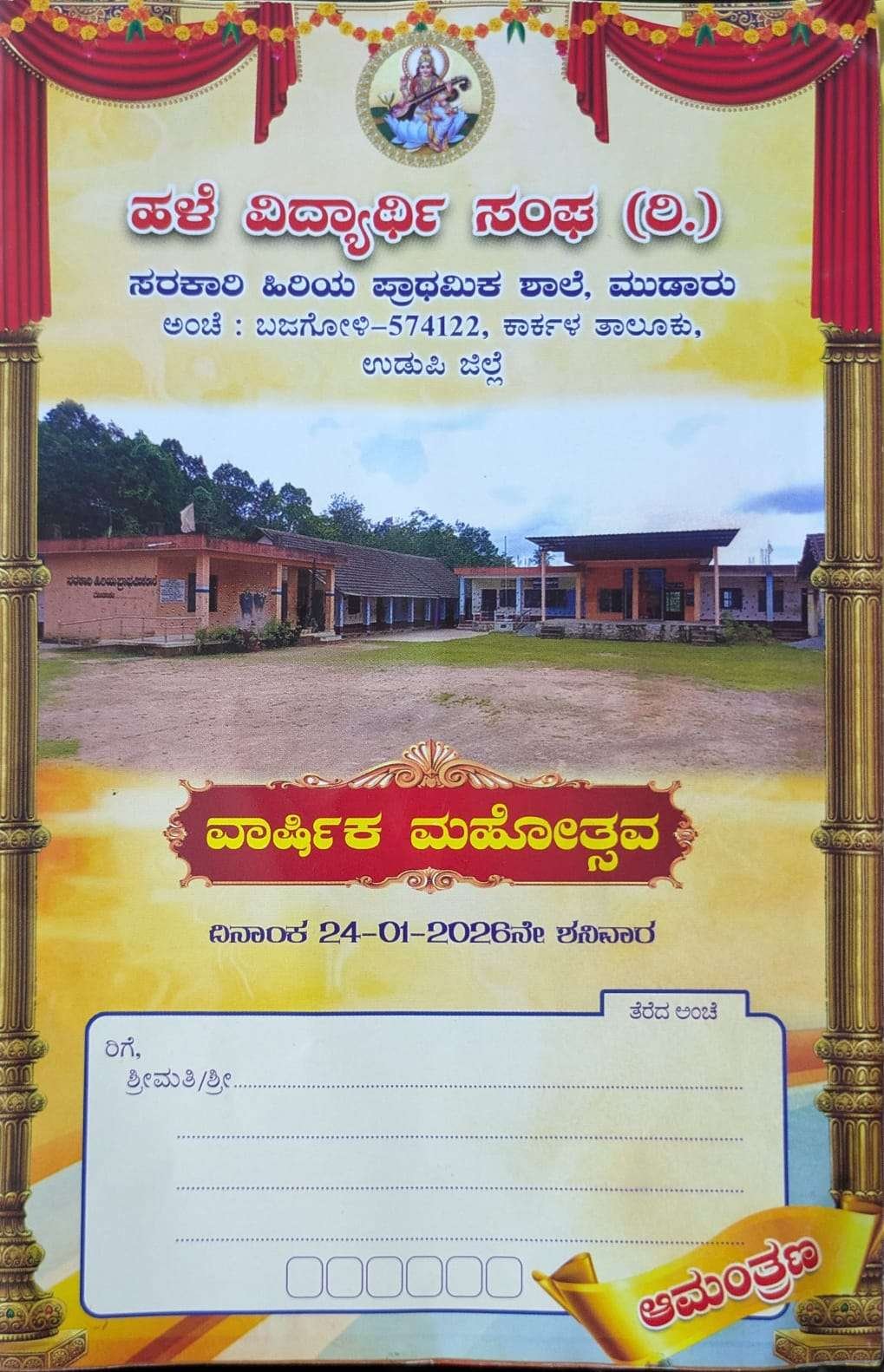 ನಾಳೆ (ಜ. 24) ರಂದು ಮುಡಾರು ಸರ್ಕಾರಿ ಹಿರಿಯ ಪ್ರಾಥಮಿಕ ಶಾಲೆಯ ವಾರ್ಷಿಕ ಮಹೋತ್ಸವ ನಡೆಯಲಿದೆ.