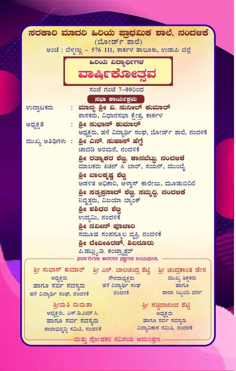 ಸರಕಾರಿ ಹಿರಿಯ ಪ್ರಾಥಮಿಕ ಶಾಲೆ (ಬೋರ್ಡ್ ಶಾಲೆ) ನಂದಳಿಕೆ- ಹಿರಿಯ ವಿದ್ಯಾರ್ಥಿಗಳ ವಾರ್ಷಿಕೋತ್ಸವ
