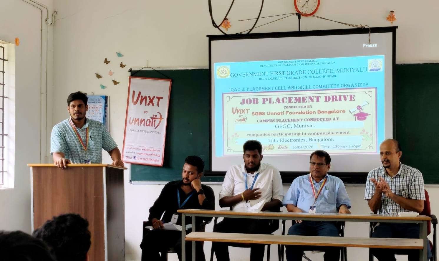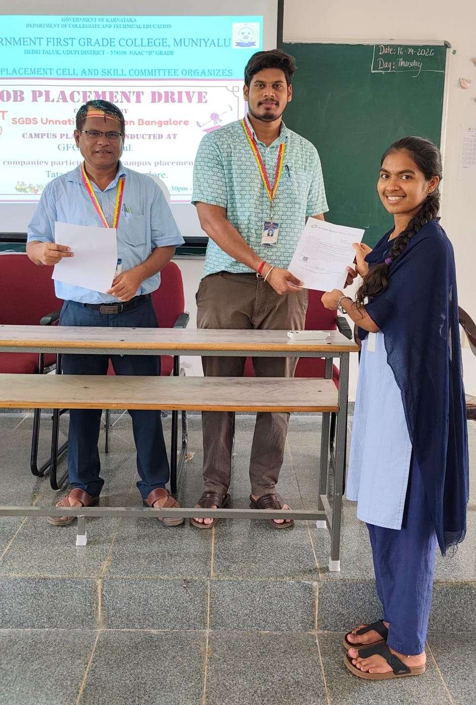 ಮುನಿಯಾಲು ಸರ್ಕಾರಿ ಪ್ರಥಮ ದರ್ಜೆ ಕಾಲೇಜು ವಾಣಿಜ್ಯಶಾಸ್ತ್ರ ವಿಭಾಗ ಮತ್ತು ಉದ್ಯೋಗ ಕೋಶ ಸಮಿತಿಯಿಂದ ‘ಟಾಟಾ ಎಲೆಕ್ಟ್ರಾನಿಕ್ಸ್ ಕಂಪನಿ’ ಬೆಂಗಳೂರು. ಇವರ ಸಹಯೋಗದೊಂದಿಗೆ ಕ್ಯಾಂಪಸ್ ಸಂದರ್ಶನ ನಡೆಸಿ ಆಯ್ಕೆಯಾದ ವಿದ್ಯಾರ್ಥಿಗಳಿಗೆ ಶುಕ್ರವಾರ ನೇಮಕಾತಿ ಪತ್ರ ವಿತರಿಸಲಾಯಿತು. ವಾಣಿಜ್ಯಶಾಸ್ತ್ರ ವಿಭಾಗ ಮತ್ತು ಮಾನವಿಕ ವಿಭಾಗದಿಂದ ಒಟ್ಟು 29 ವಿದ್ಯಾರ್ಥಿಗಳು ಸಂದರ್ಶನ ಎದುರಿಸಿ ಕೆಲಸಕ್ಕೆ ಆಯ್ಕೆಯಾಗಿದ್ದಾರೆ.